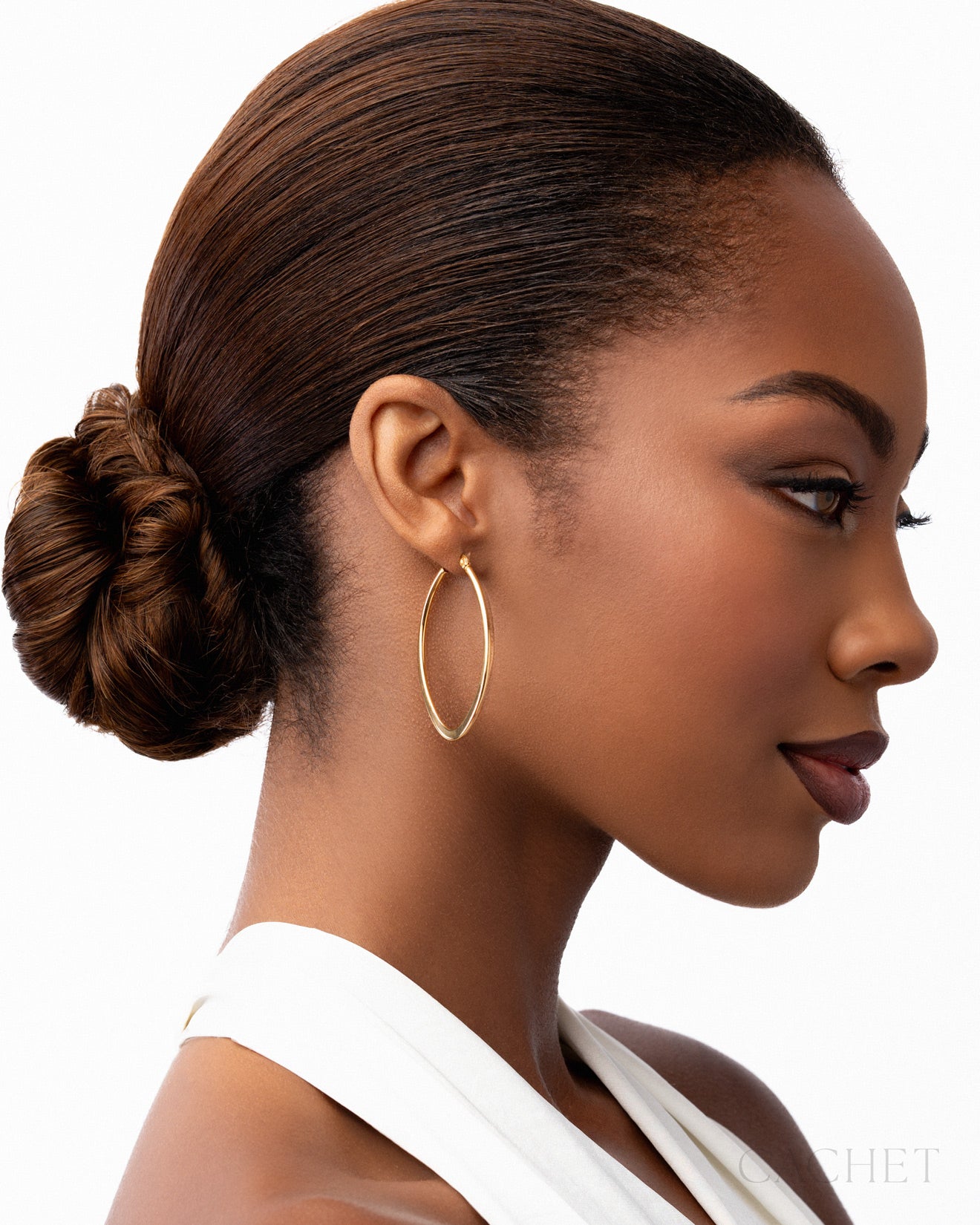 Like a golden silhouette in motion, the earrings "Ovate" frame the face with softened, sculptural curves--an elegant ode to symmetry and shape.